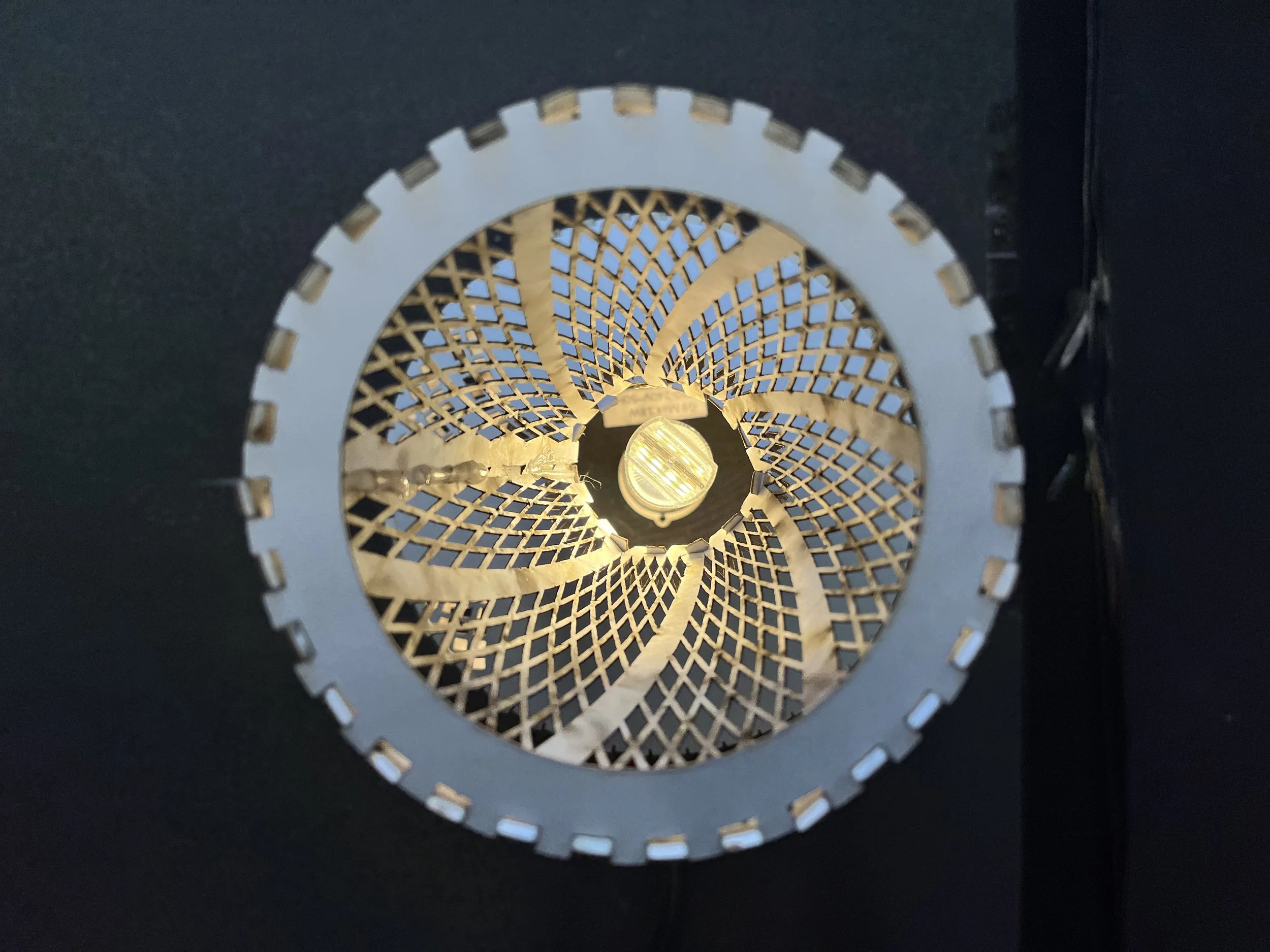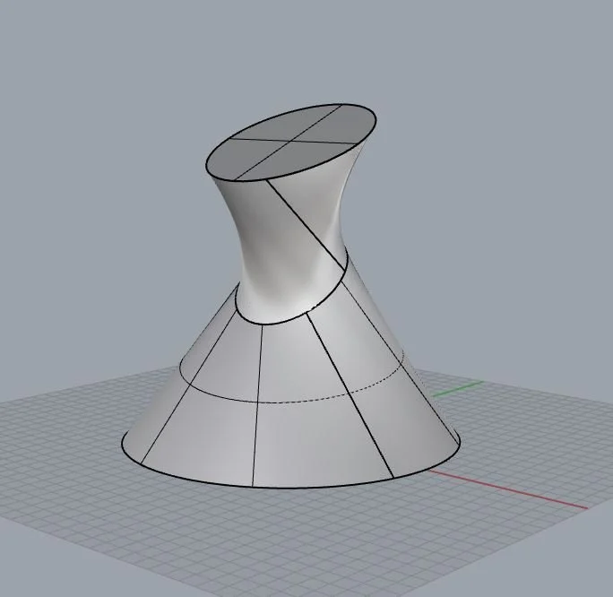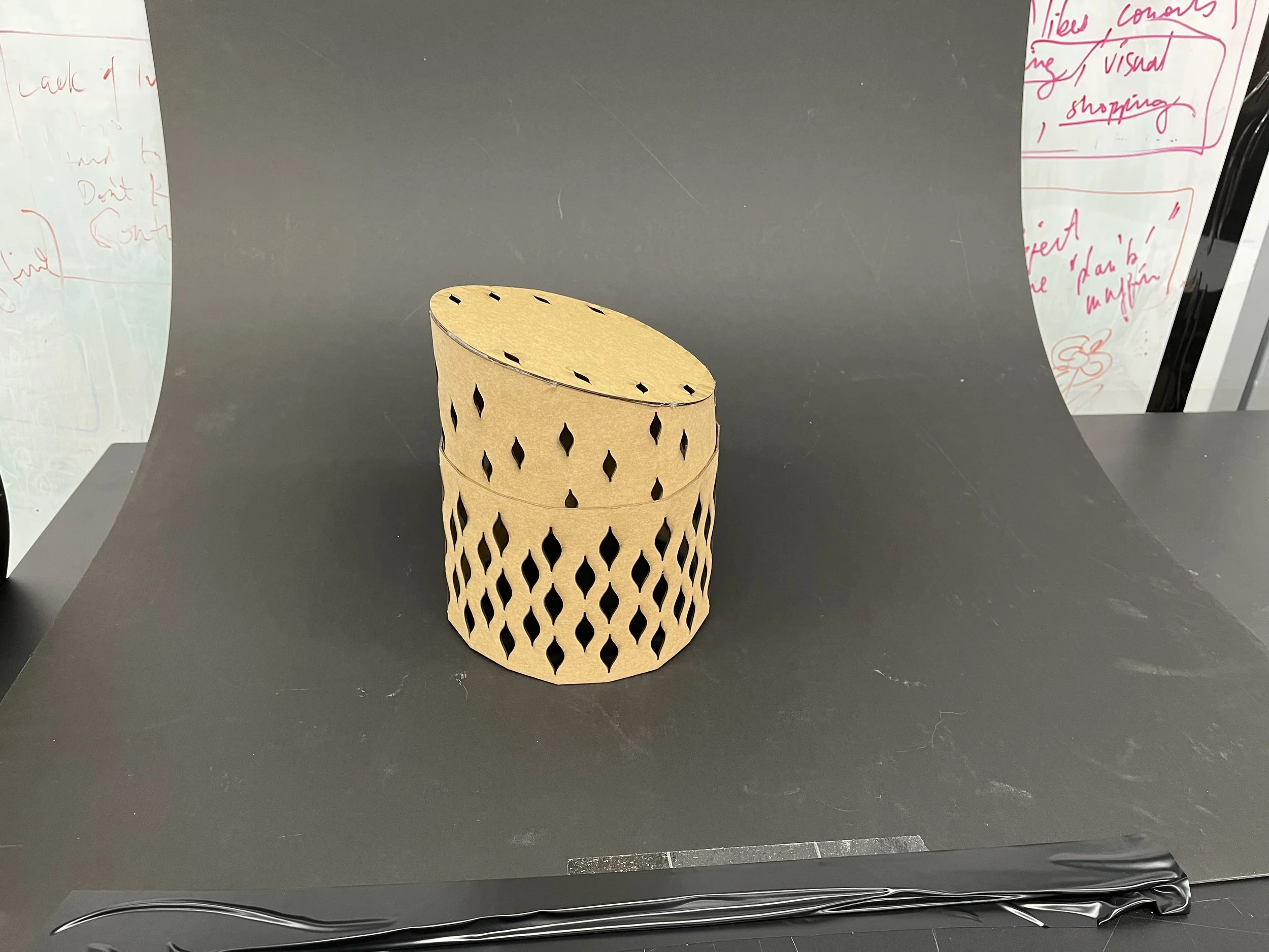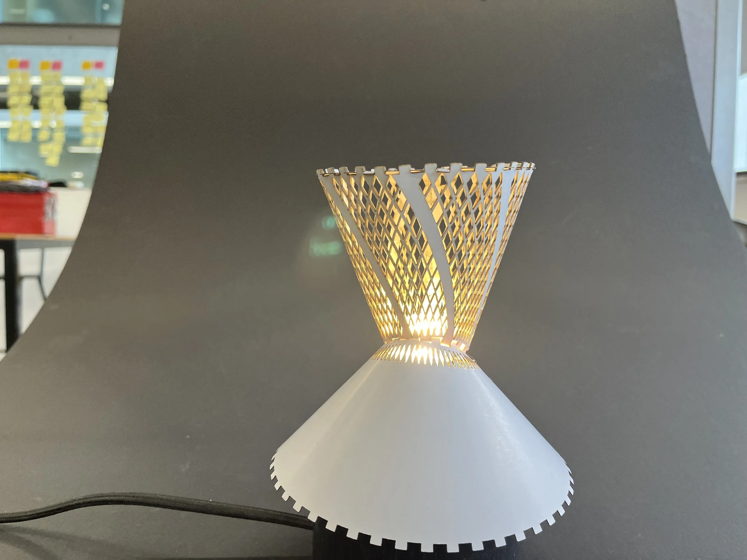 A conceptual project experimenting with laser cutting, kerfing and shadow play. The design process identified potential in form angles and curvature requiring two separate forms interlocked at an angled mid point.